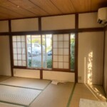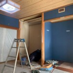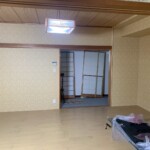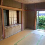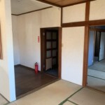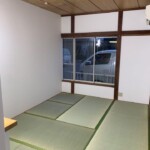 戸建住宅を介護施設にとのご依頼。2棟目。解体工事・庭木手入れ・防水工事(駐車場)・電気工事・畳表替え・クロス貼り替え・ドア制作・間仕切り壁設置