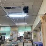 ビルの2階店舗の雨漏り調査のご依頼。屋上のトタン屋根の劣化と判明し、解体撤去をすると高額になりますのでトタン屋根の上から全面防水工事のご説明をしご納得いただきましてご契約いただきました。