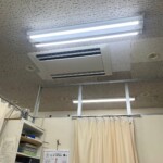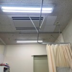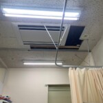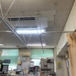 天井埋込エアコン工事を先行したために、既存のエアコンより小さくなり天井が全て覆われていないと消防検査通らないので天井を貼ってほしいとのご依頼。