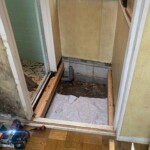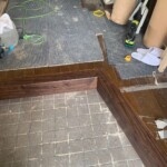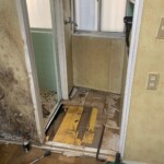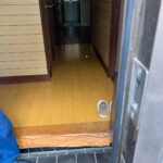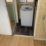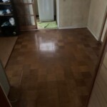 会社の寮のリフォームのご依頼。玄関・廊下・キッチン・洗面の床がブカブカのため、どうにかして欲しいとのご依頼。 玄関・廊下・キッチンは解体費・処分費をなくす為に既存の床の上にフローリングを増し貼り。洗面は腐っていたので解体して新たに床を仕上げました。