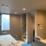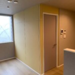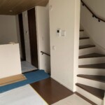 戸建新築住宅を民泊にする為に竪穴区間工事のご依頼。民泊施設にする為の必須工事、間仕切り壁設置・ドア2箇所設置。クロス工事