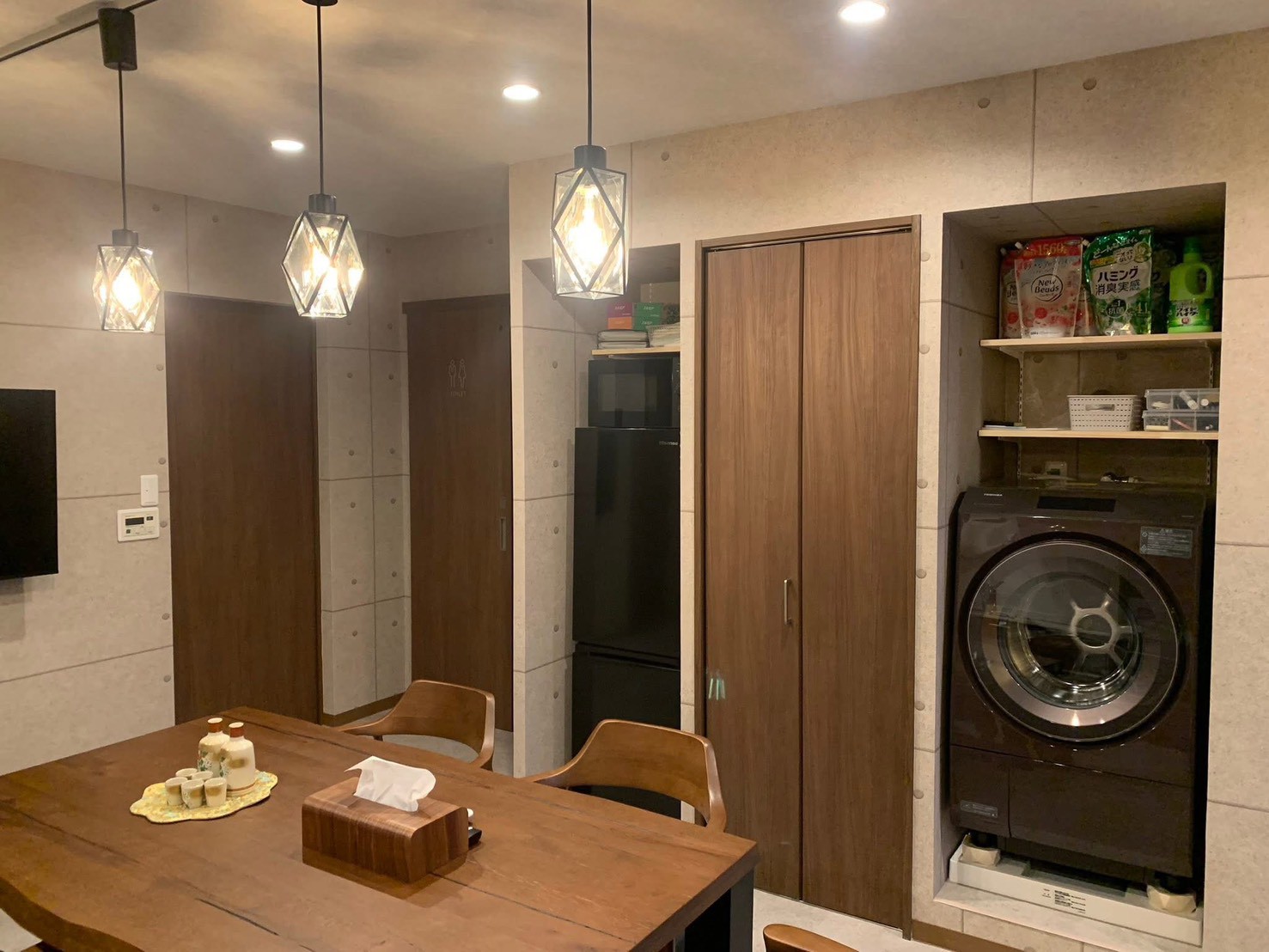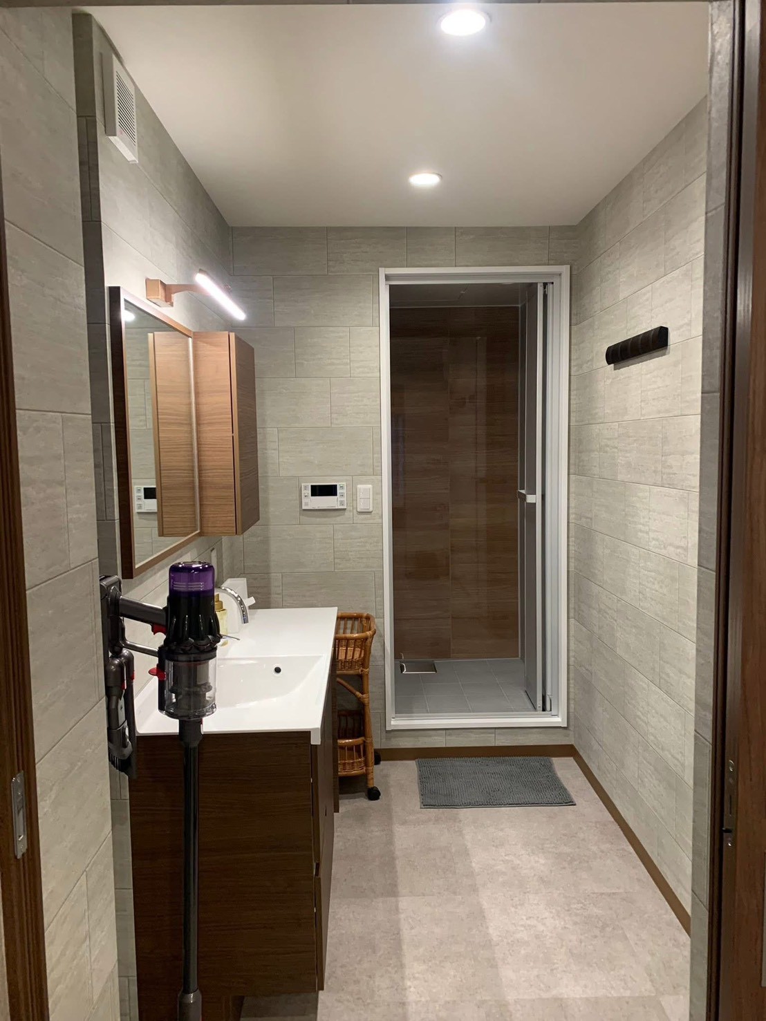 戸建中古を購入し民泊施設にする為に既存浴室解体後に洗面所に。カーポートを一部潰してシャワールーム2台設置。他社様での対応不可やご予算の問題もありまして、打ち合わせを繰り返しましてどうにかご予算内に納める案を提出しご納得いただきましてご契約いただききました。