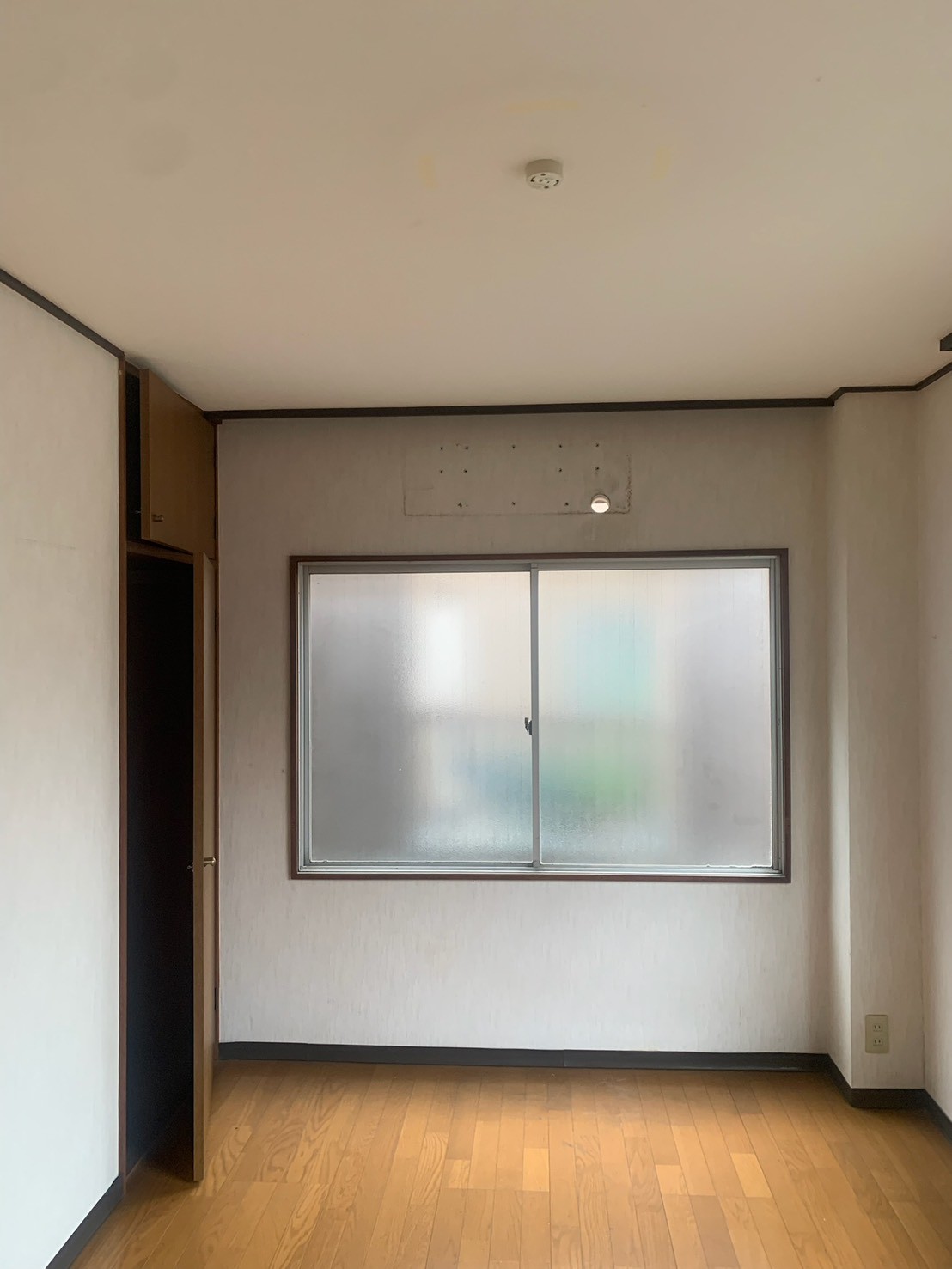 6畳の畳を処分してフローリングにしたいとのご依頼。お孫さんが来た時の為にベッドを置きたく、押入もクローゼットみたいにしたい。押入は中段を解体後にプリントボードを上貼りしてパイプ取付。