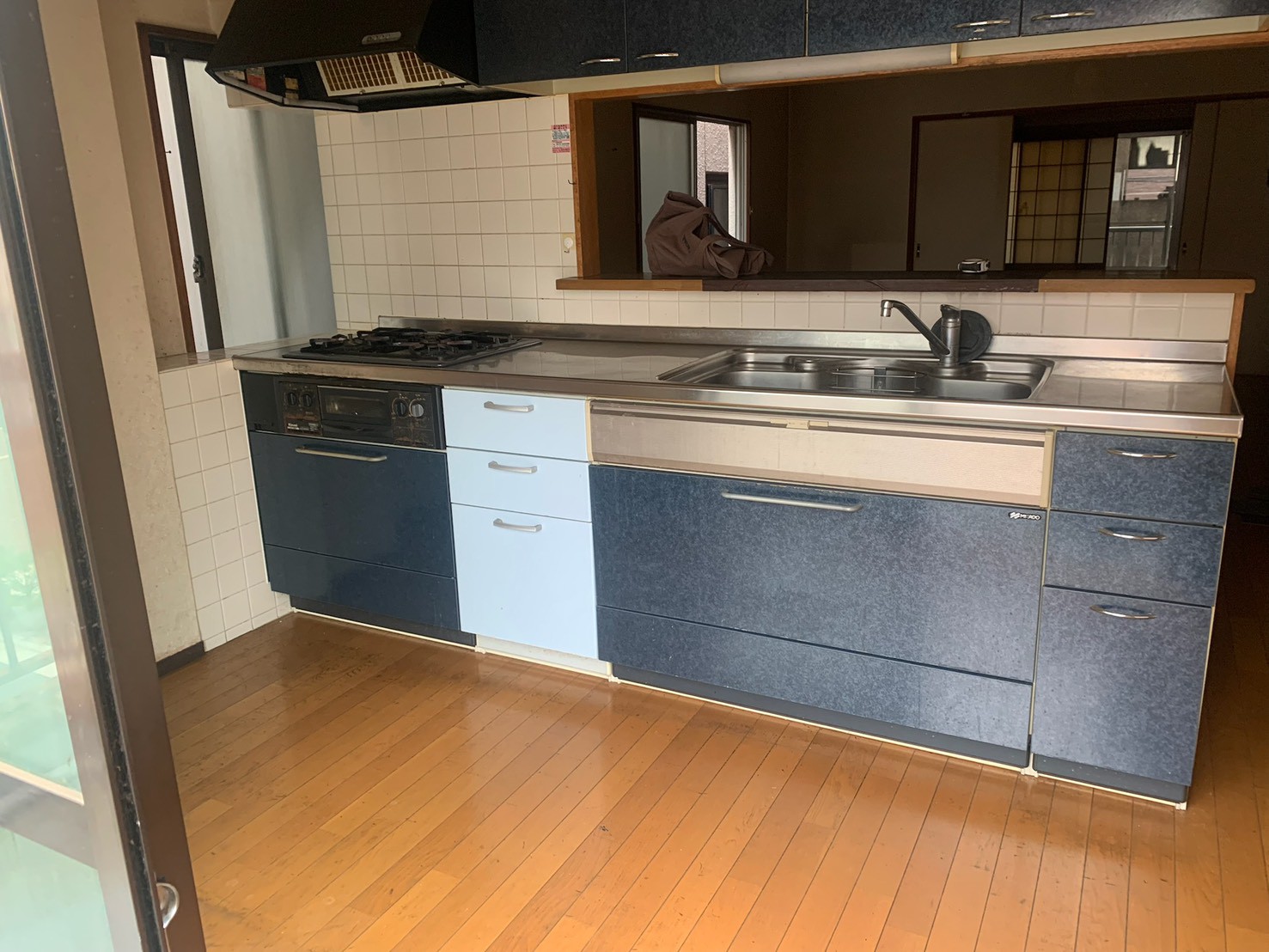 既存キッチン解体処分からの新規キッチン取付。トイレ交換。フローリング増し貼り。アウトセット引戸2台取付。キッチン・トイレのクロス貼り替え。 1階のトイレを新しく交換して、2階のトイレは床をフラットにしてから新しく交換してほしいとのご依頼。他社様のお見積もりよりも15万円も安かったとの事でキッチン・フローリング・引戸も含めた再見積もりを提出したところご予算以内ということでご契約いただきました。
