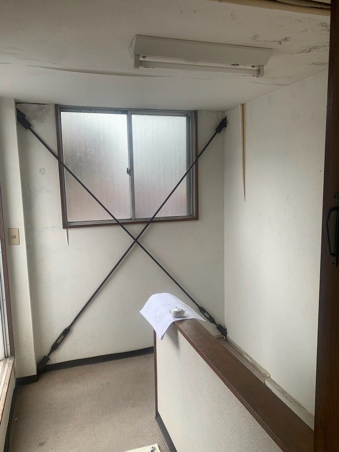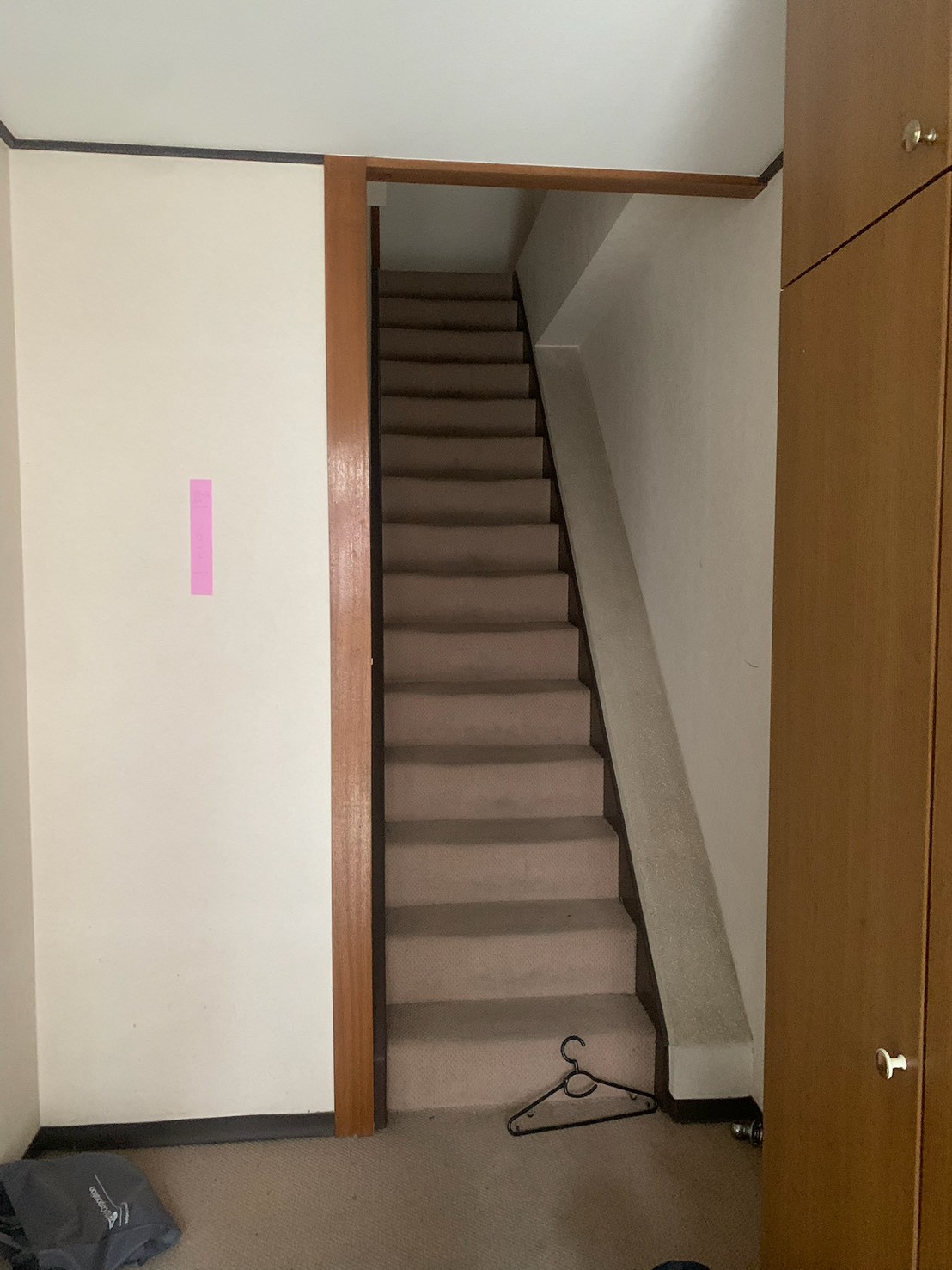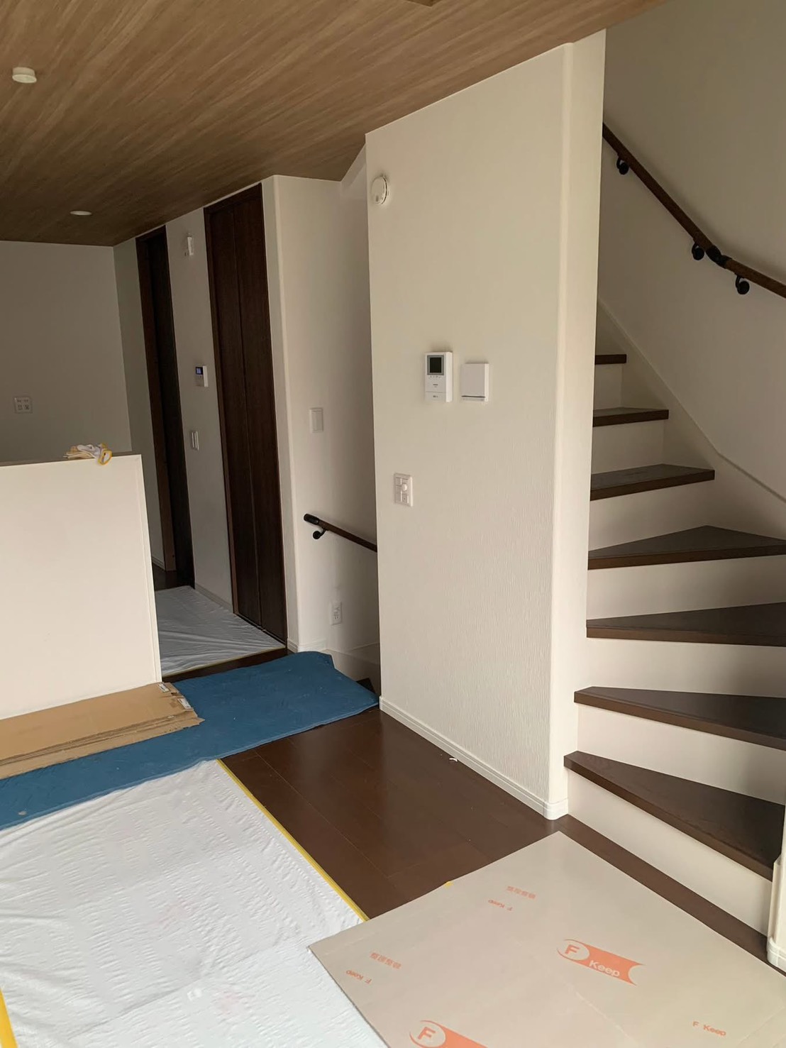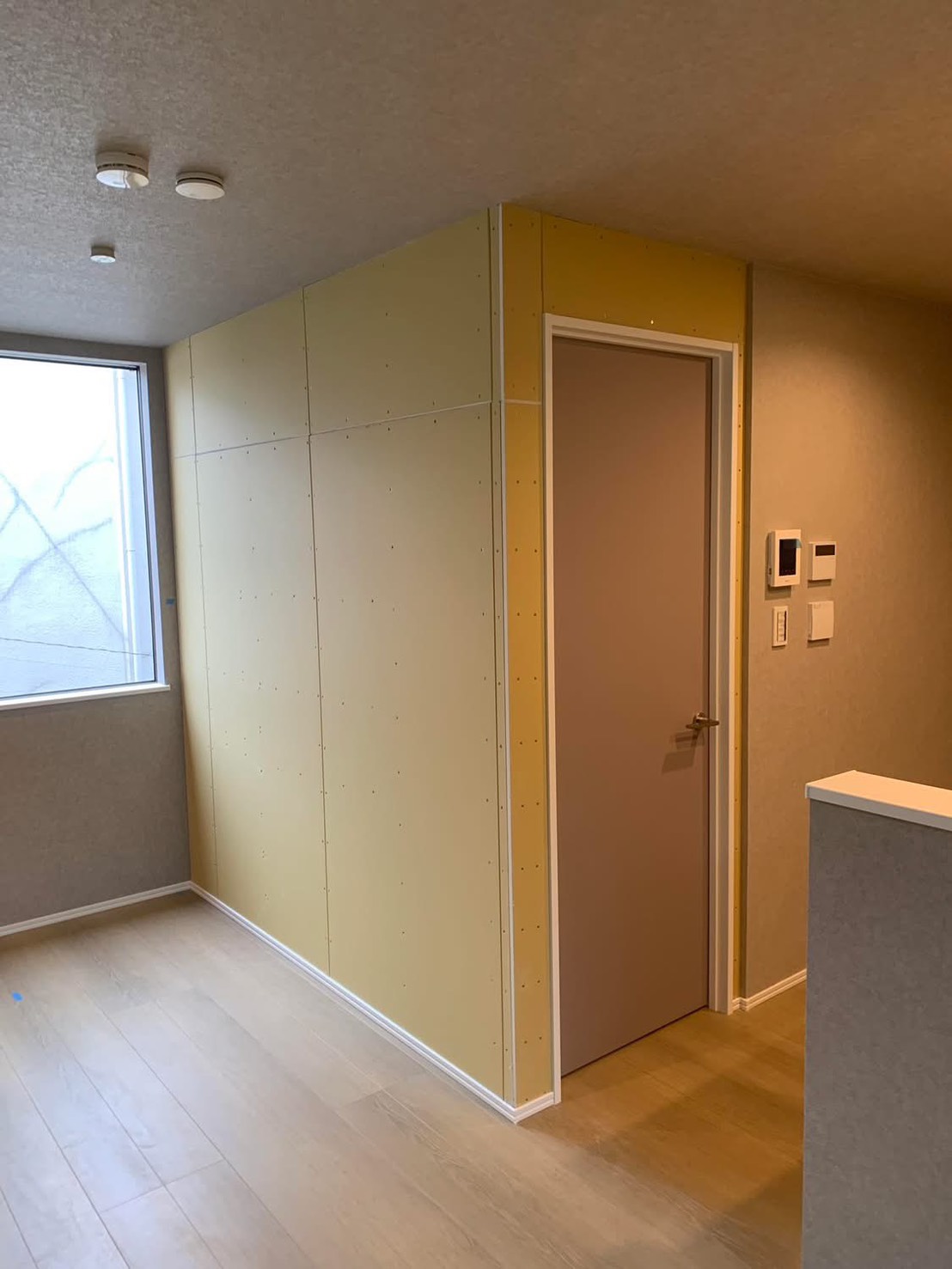 戸建新築住宅を民泊にする為に竪穴区間工事のご依頼。民泊施設にする為の必須工事、間仕切り壁設置・ドア2箇所設置。クロス工事