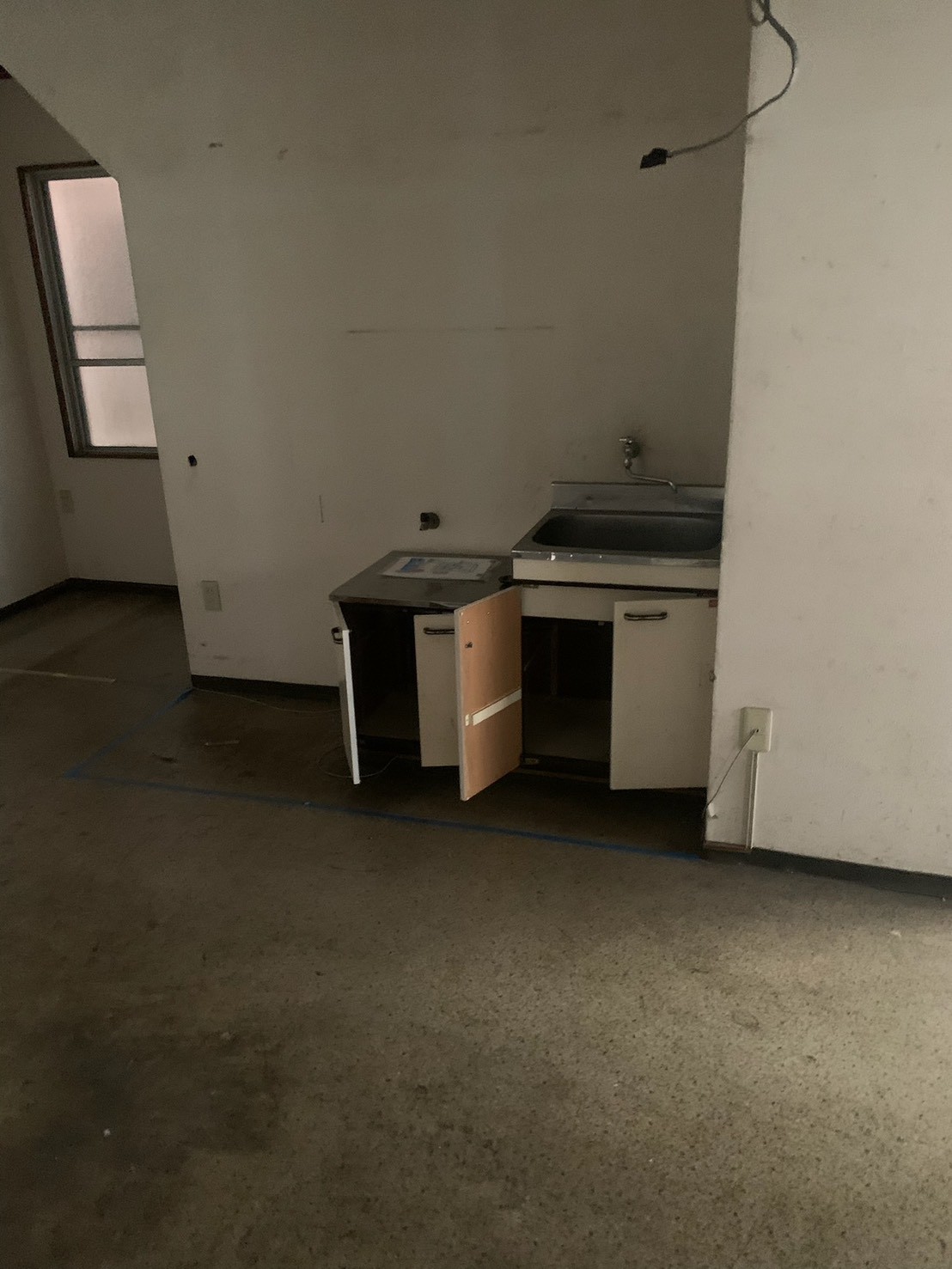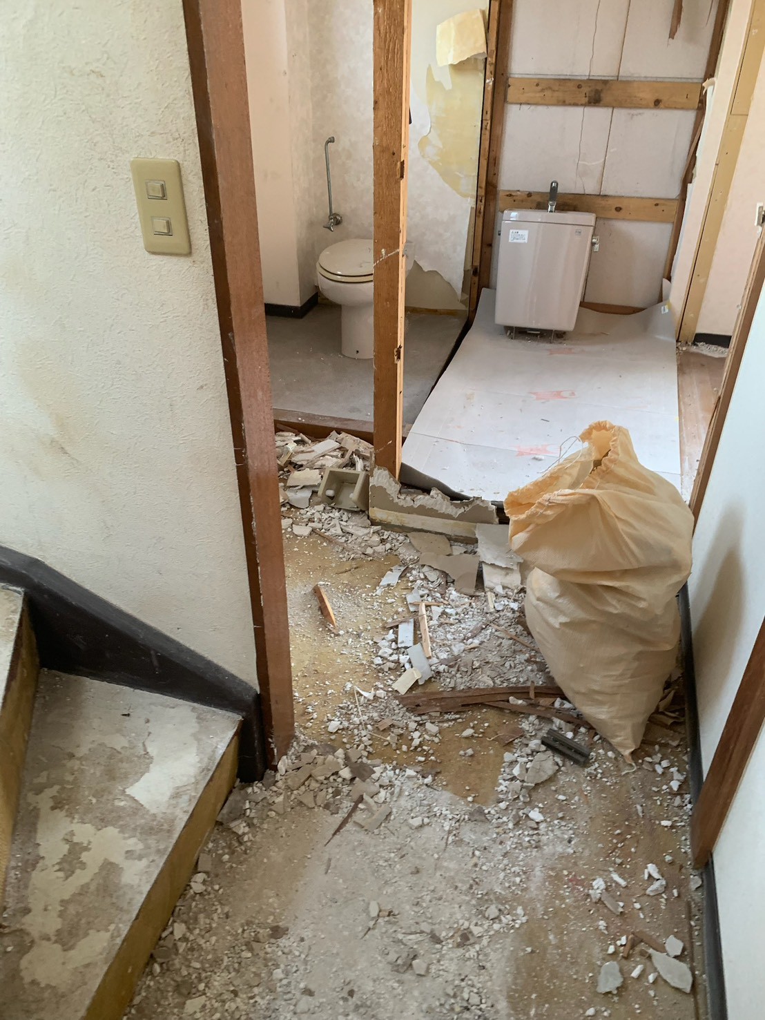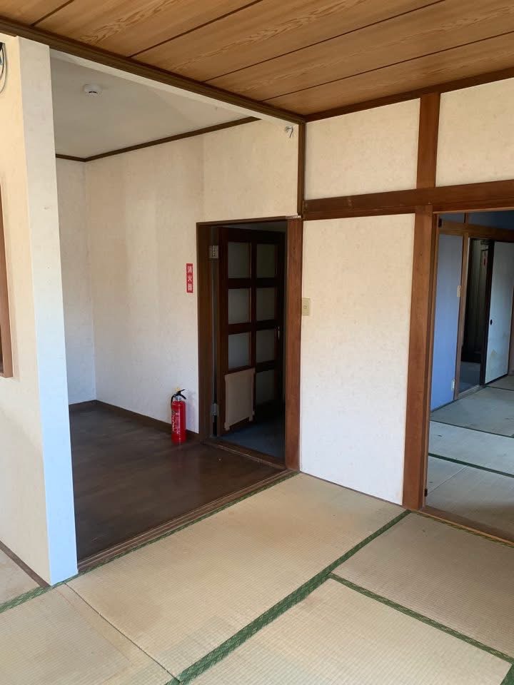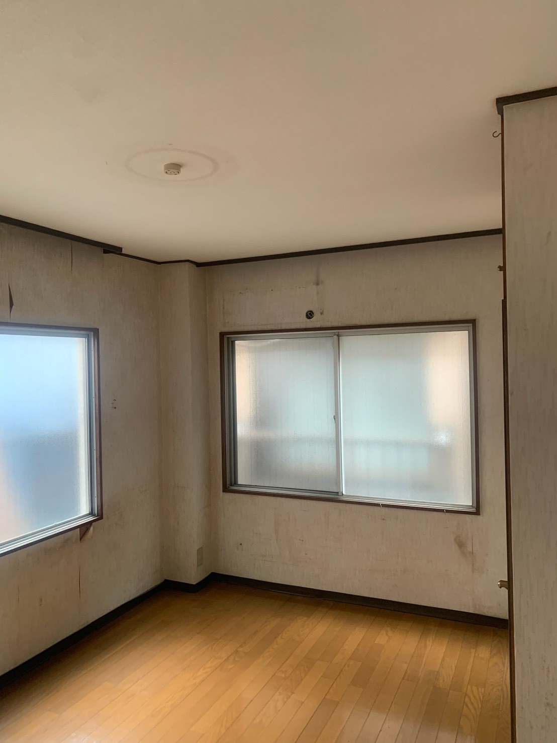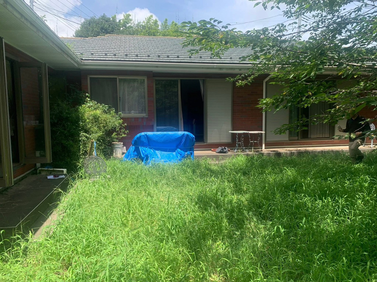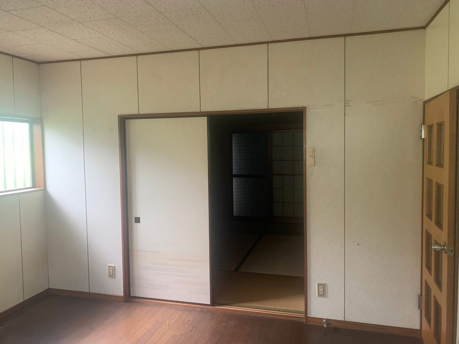 戸建住宅を介護施設にとのご依頼。2棟目。解体工事・庭木手入れ・防水工事(駐車場)・電気工事・畳表替え・クロス貼り替え・ドア制作・間仕切り壁設置