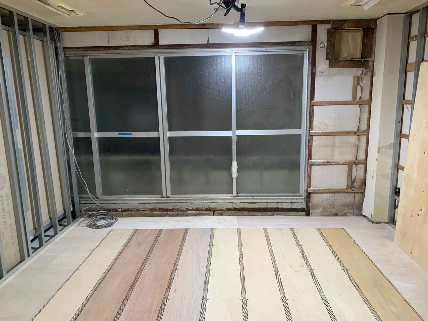 ビルの2階の部屋を民泊施設にする為、1階の店舗への騒音対策の為にも床を貼り替えたいとのご依頼。