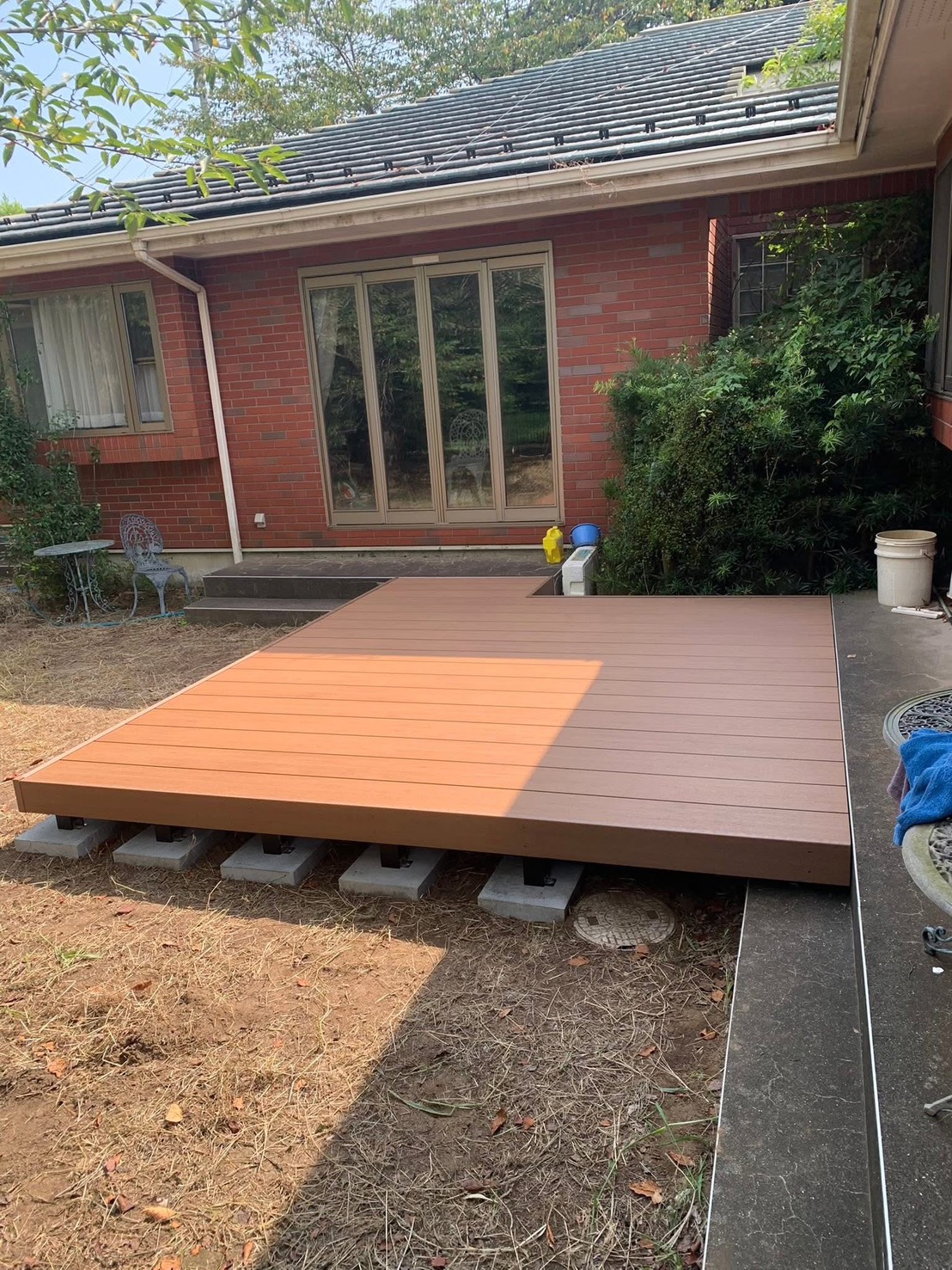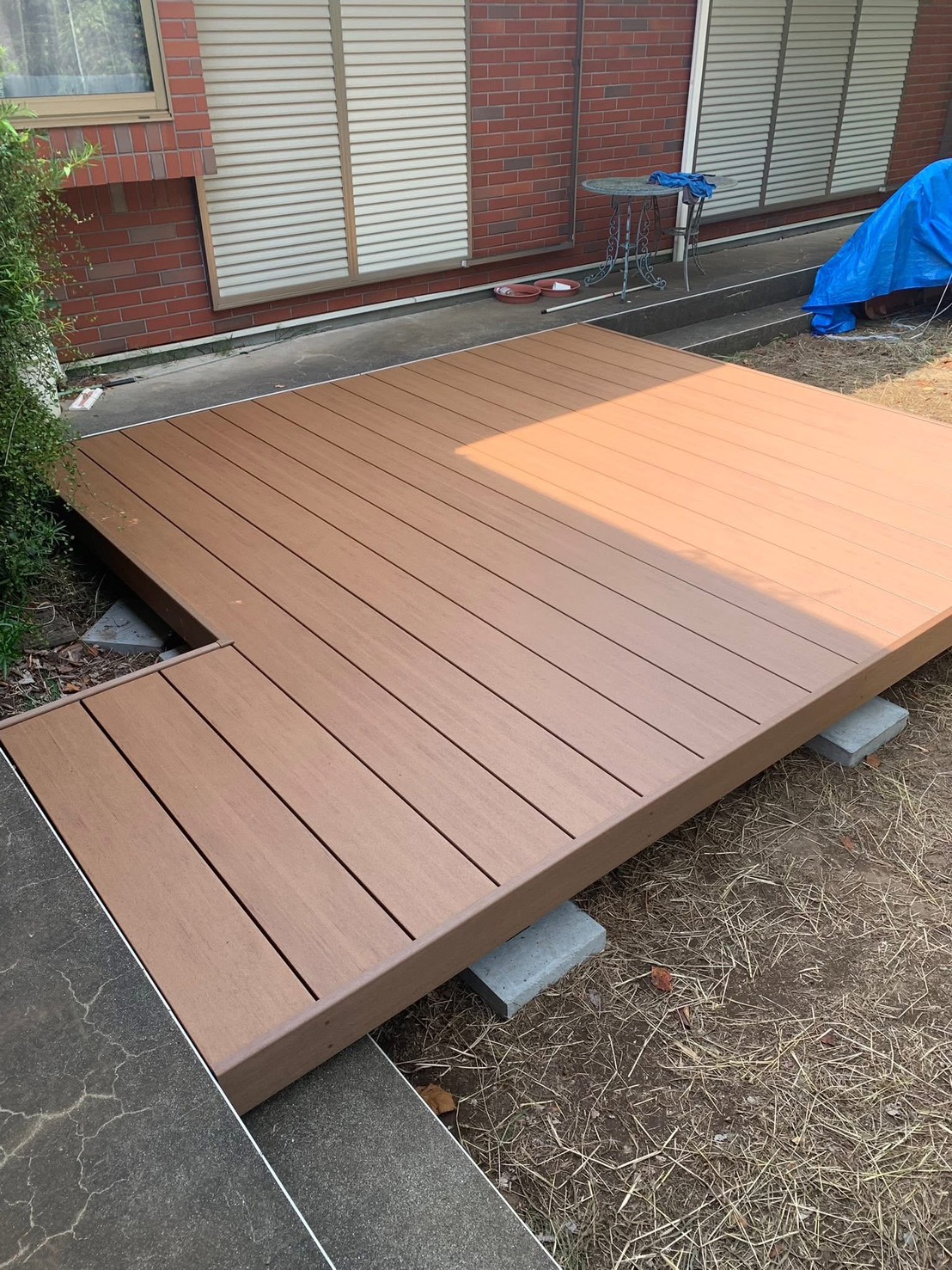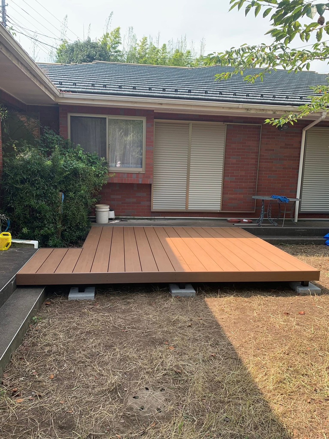 ご友人を集めて庭で催し物をしたいのでウッドデッキを作りたいとのご依頼。 木製でウッドデッキを作ると定期的なメンテナンスが必要になるので、三協アルミの人工木ウッドデッキをお勧めさせて頂きました。以前クロスの貼り替え依頼を頂きましたリピーター様です。