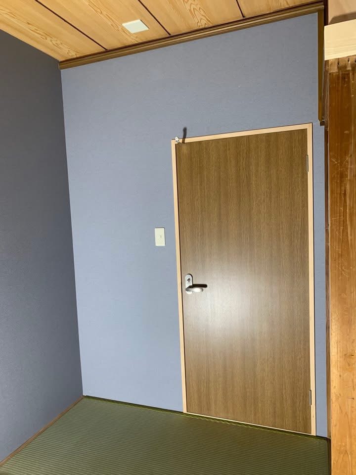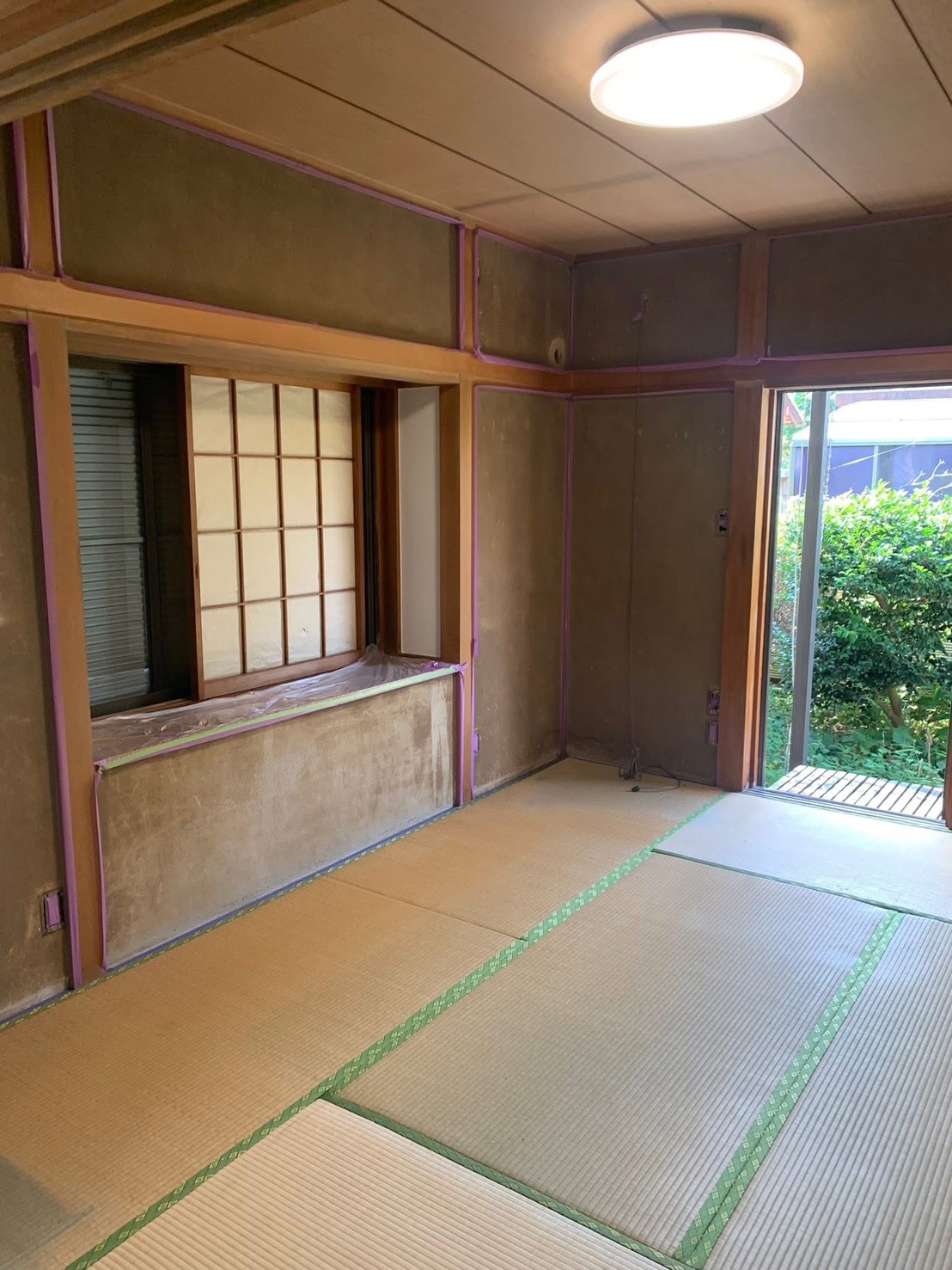戸建住宅を介護施設にとのご依頼。庭木手入れ・畳表替え・クロス貼り替え・ドア制作・間仕切り壁設置・和室土壁塗装