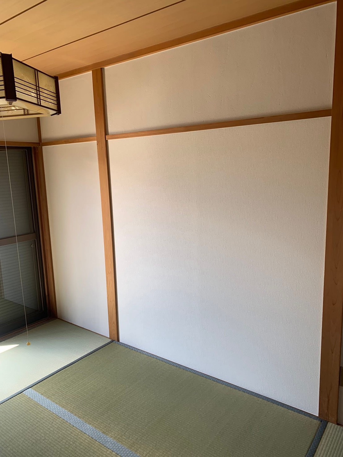 ご両親の残したご実家に戻り住むので、まずは大部屋をキレイにクロスを貼り替えたいとのご依頼。 ホームページの施工実績やお客様の声をご覧になって下さいましてのお問い合わせで、即御契約頂きました。