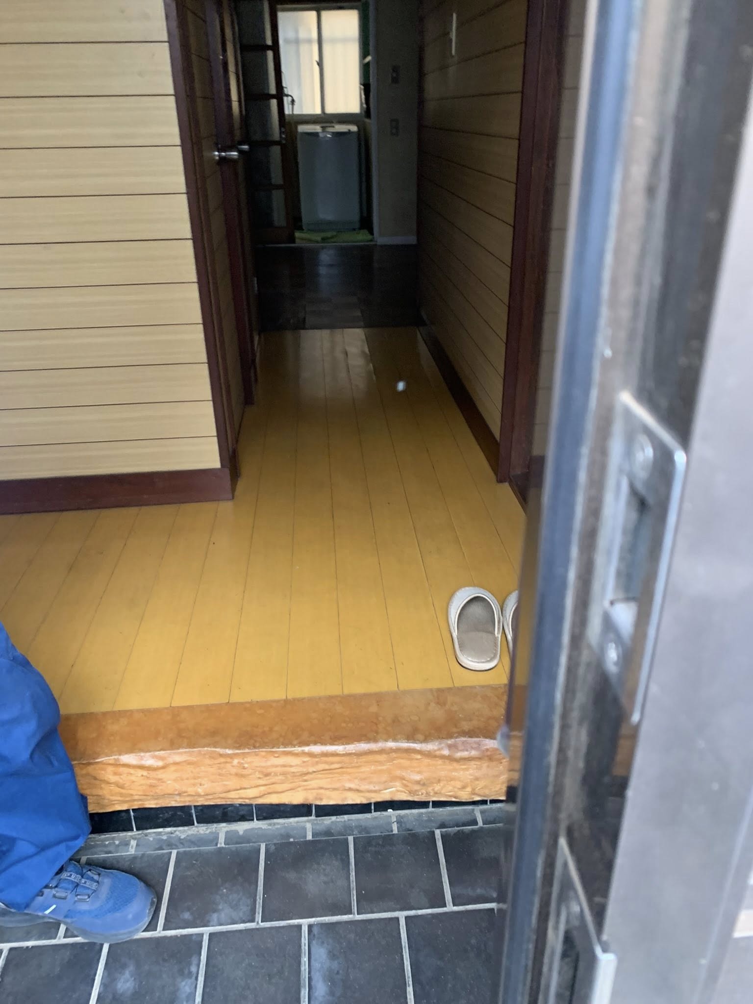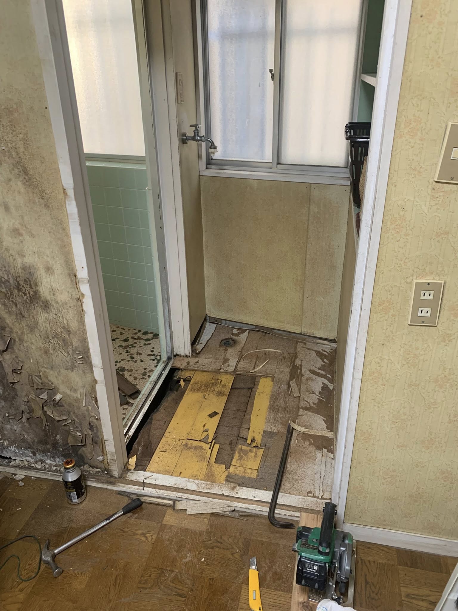 ここはお風呂の出入り口にもなっており、長年の水濡れで床下まで傷んでいる可能性が高い状況でした💦